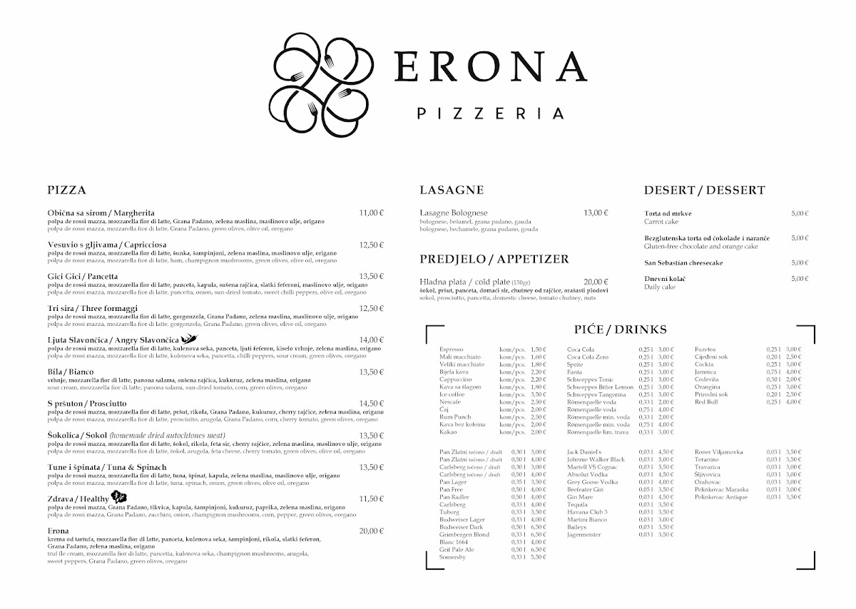 Whether you're enjoying a casual dinner or celebrating a big gathering, Pizzeria ERONA ensures promptness and warmth, as seen in happy reviews from guests who enjoy the vibrant atmosphere. Don't miss this local treasure—every pizza is a masterpiece worth savoring!